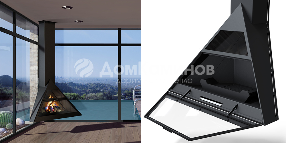 Классический панорамный камин Admeto от Traforart, приспособленный для угловой установки, обладает всеми главными характеристиками этой серии