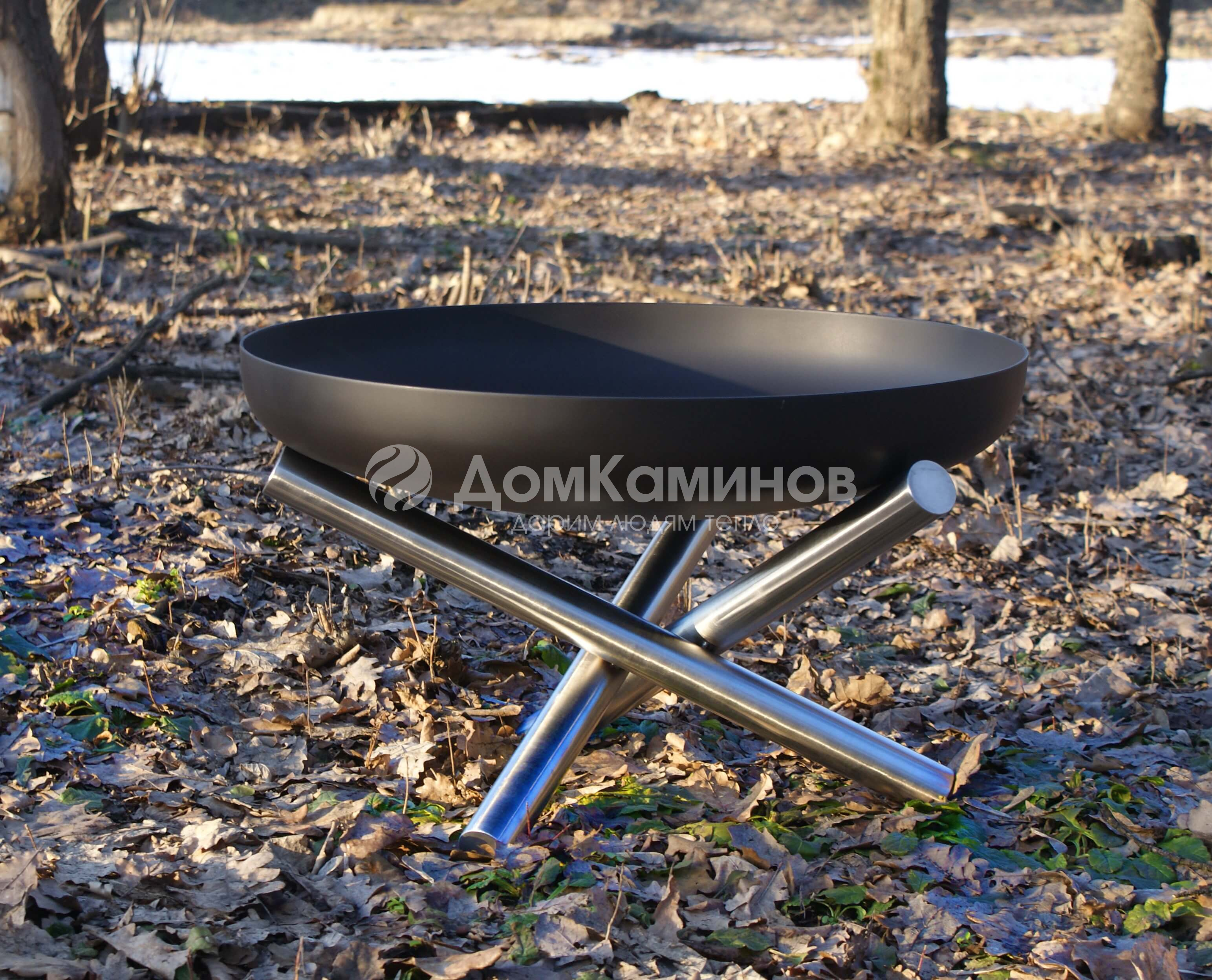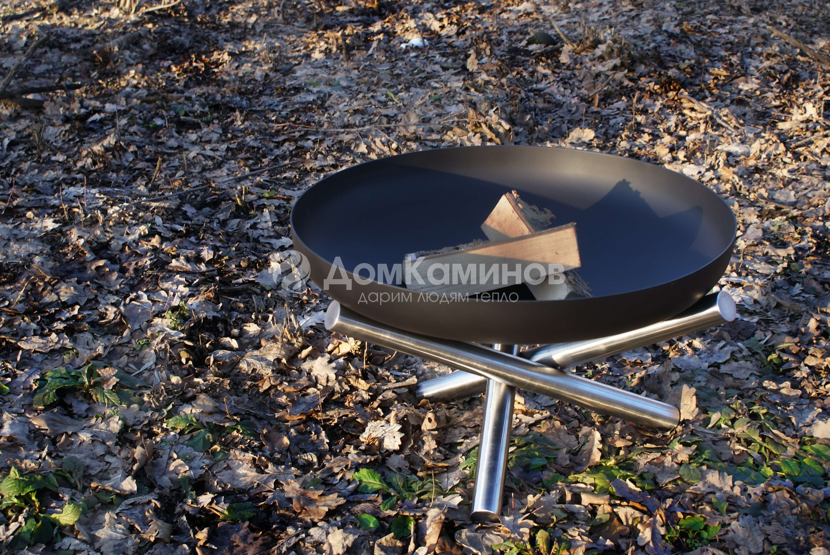 Чаша, изготовленная из европейской стали с антикоррозионным термостойким покрытием, установлена на подставку из трех ножек. Три точки опоры обеспечивают устойчивость конструкции даже на сыпучих покрытиях. Достаточно большой вес не позволит чаше перевернуться, даже если случайно пройти мимо и задеть ее.