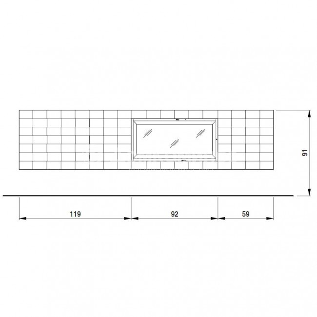 Облицовка из матового Bianco Mediterraneo с эффектом волн. Внутренние рамки - окрашенная серая сталь.