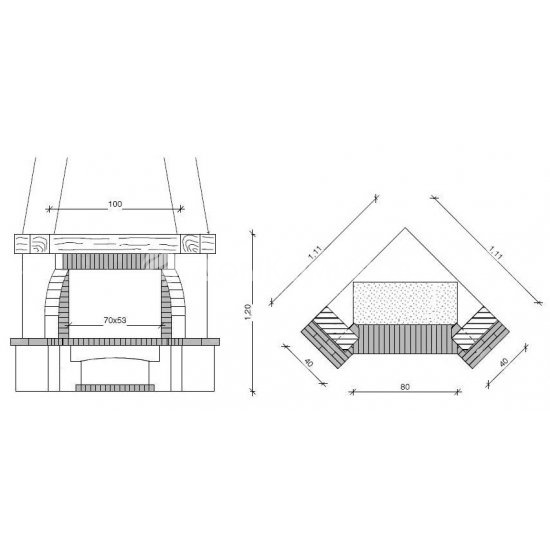 Природный камень, нижние полочки и капители из песчаника, балка массива дуба, клинкерный кирпич Feldhaus