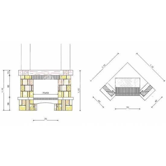 Нижние полочки и капители из песчаника, балка массив дуба, клинкерный кирпич Feldhaus