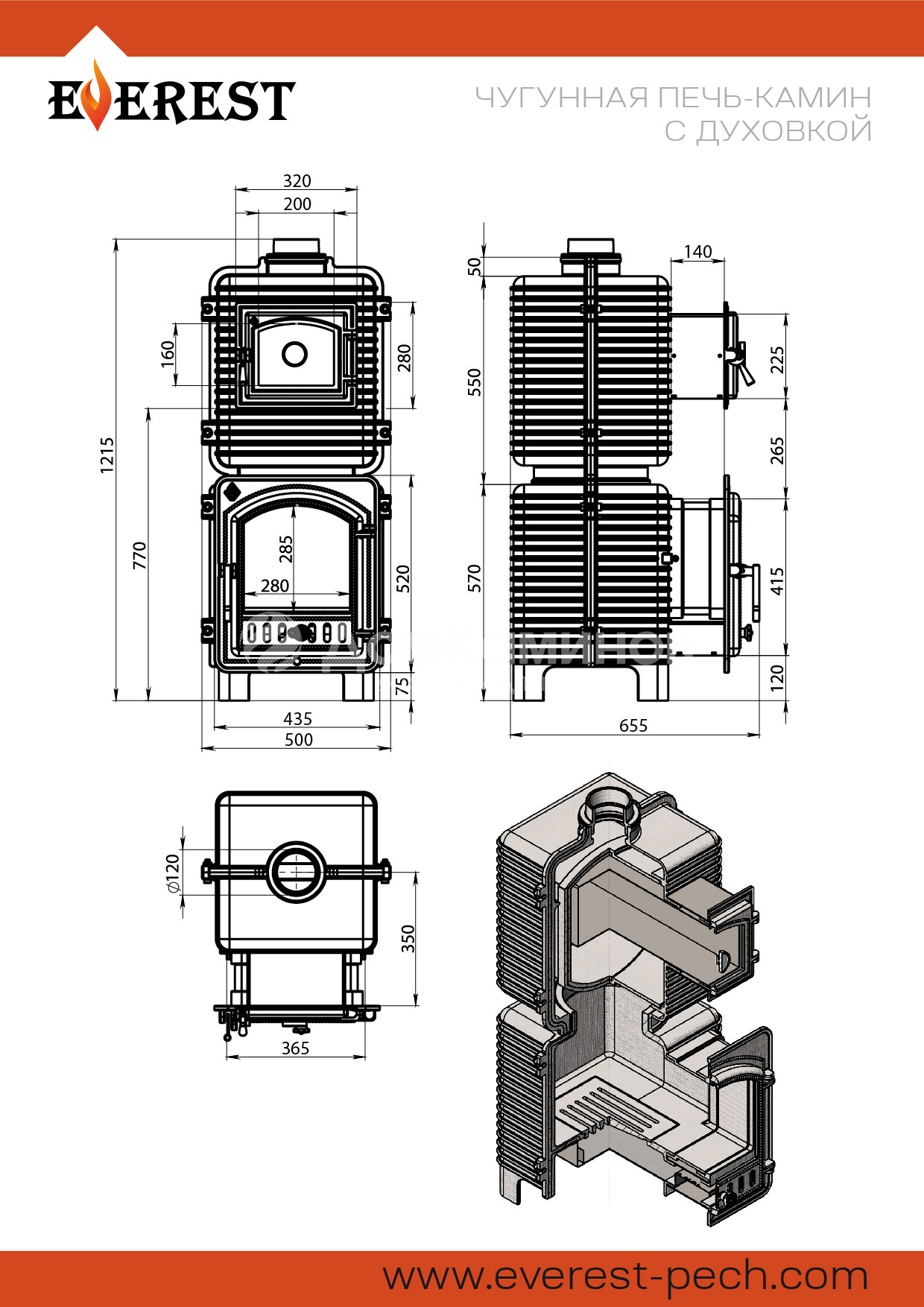EVEREST Печь - камин с духовкой диаметр дымохода: 120 мм
