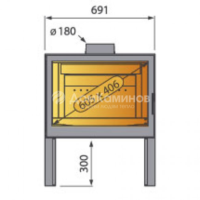 Отопительная печь с двусторонним стеклом (сквозная). С камерой вторичного дожига отработанных газов, встроенной колосниковой решеткой и зольным ящиком. На задней стороне печи расположен конвекционный кожух, предназначенный для более быстрого нагрева воздуха в помещении.