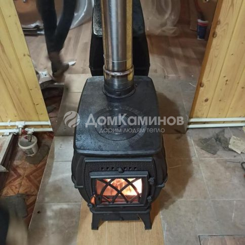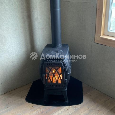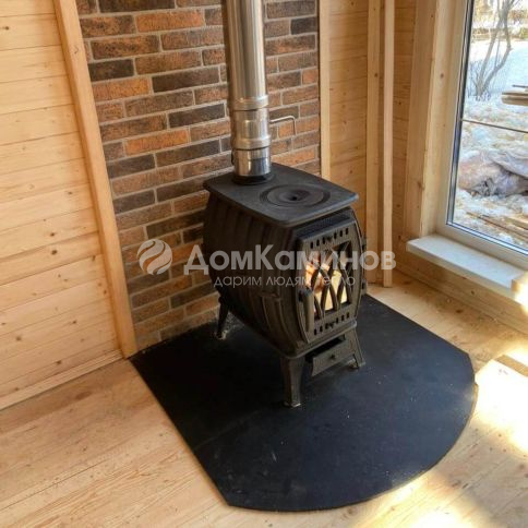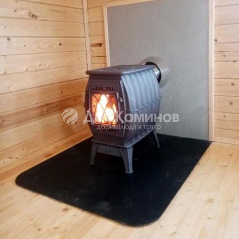 Для печи весом 106 кг не нужно стоить фундамент. Достаточно положить под дно лист из жаропрочной стали или огнеупорную плиту, что помимо защиты от возгорания позволяет распределить вес конструкции по полу и снизить нагрузку на перекрытия. Серьезную подготовительную работу придется проделать, только если в доме тонкий деревянный пол на лагах с большим шагом. В этом случае лучше разобрать участок, где будет стоять печь, и усилить основание.