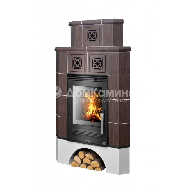 Печь камин ABX Regina (угловая) – это изразцовая европейская модель, предназначенная для работы на сухих дровах лиственных пород дерева или брикетах. Максимальная длина поленьев для загрузки в топку 340 мм. Эта компактная угловая печь очень популярна, так как занимает небольшую площадь комнаты, тем не менее её мощность достаточна для обогрева помещения объемом от 65 до 170 кубических метров. Топка печи выполнена из долговечной и высококачественной стали, а через большое стекло удобно присматривать за огнем и любоваться играми пламени. Огнеупорное стекло (стеклокерамика) выдерживает температуру до 750 градусов. Кафельная облицовка печи очень долговечна, не подвержена старению и выдерживает высокие перепады температур. Вермикулитная облицовка дна и стенок топки предохраняет сварную конструкцию от воздействия тепловой нагрузки. Топка печи имеет систему вторичного и третичного дожига. Главная особенность системы вторичного дожига заключается в следующем, сначала сгорают дрова, а затем остаточные продукты горения, это дымовые газы с твердыми частицами. Уменьшая приток воздуха или увеличивая его подачу, можно добиться оптимальной интенсивности горения. Система вторичного дожига позволяет существенно снизить отложения сажи на стенках топки и дымохода, повышая теплоотдачу и способствуя экономии дров, к тому же вторичный дожиг смотрится очень красиво, его сравнивают с северным сиянием. Печь камин ABX Regina (угловая) по волшебному преображает привычные домашние декорации, добавляя загадочности и уюта. Изменчивые огненные языки пламени за стеклянной дверцей печи не только обогревают помещение, но и отражаются на стенах, представляя собой театр теней у вас дома. Различные варианты цветовых исполнений камина, позволят подобрать вариант, который наиболее гармонично впишется в интерьер. Печь камин настолько качественно сделана, что компания производитель ABX даёт на неё гарантию 5 лет