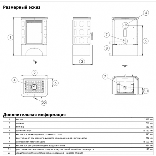 Диаметр дымохода (мм): 150
