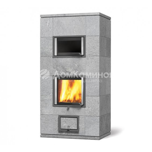 Отопительная печь-камин с просторным духовым шкафом и задним подключением дымохода. Выполнена в традиционном для скандинавского стиля дизайне, имеет массивную облицовку из талькомагнезита. Именно природный камень талькомагнезит, добываемый в карьерах Северной Финляндии, реализует отличные теплоаккумуляционные возможности данной модели. В зависимости от степени утепленности дома и качества используемого топлива, данная печь способна всего от одной закладки дров накопить достаточное количество тепла для последующих двух суток. Печь оснащена современными технологиями горения и распределения воздуха, системой «чистое стекло» и опцией дожига дымовых газов. Предельно чистое сжигание дров позволяет использовать для создания тепла, в том числе, и энергию продуктов сгорания, тем самым, обеспечивая экологичное и экономичное отопление исключительной эффективности.