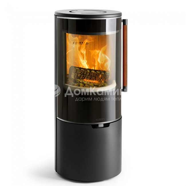 Отопительная печь Keddy K900, низкая, черная, кожаная ручка + хромированная окантовка стекла