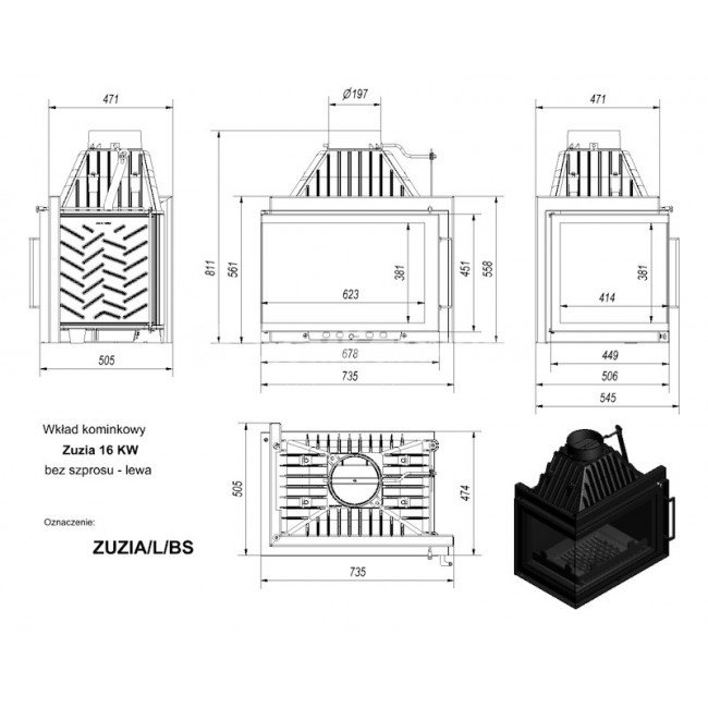 Каминная топка Kratki Zuzia L BS (угловое стекло слева)