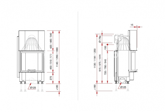 Различные варианты оформления дверных рамок: антрацит, позолота, хром. Дверца с двойным стеклом обеспечивает наибольший комфорт при эксплуатации. Поглощает 30% лучистой энергии. Два варианта открытия дверцы: открытие вправо и влево у топок, обозначенных «s» (пример Lina 6757s), открытие вверх и в сторону для прочистки стекла, обозначенных «h» (пример Lina 6757h).