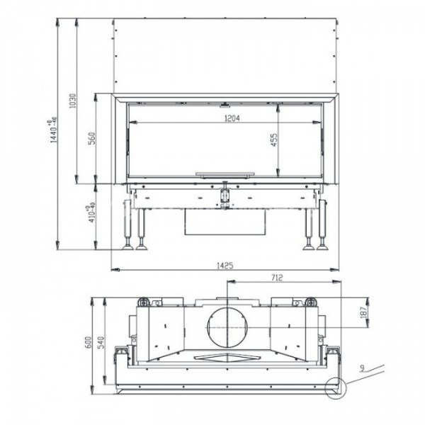 Корпус каминной топки выполнен из стали, камера сгорания облицована светлым огнеупорным керамическим материалом Carcon. Это помогает повысить температуру в камере сгорания, улучшить полноту сжигания топлива и увеличить продолжительность отдачи тепла от одной закладки дров. Кроме того, повышение температуры способствует более чистому горению, предотвращая загрязнение стекла.