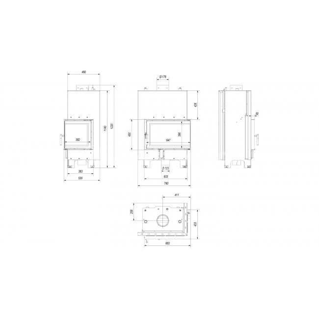 Каминная топка Kratki с водяным контуром MBM PW 10 P BS W