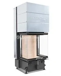 Компактная трехсторонняя каминная топка. Боковые стекла без перегородок. Стекло составное из трех частей. Дверца с подъемным механизмом. Для чистки стекла боковые дверцы открываются вбок. Фронтальное стекло фиксированное. Опционально топка может быть оснащена монтажной конструкцией с рамкой в черном цвете или в нержавейке облегчающей монтаж топки в облицовке. Топка с дымоходным патрубком D200 мм. Опционально топку можно оснастить дымоходным патрубком D180 мм. Заднее или верхнее подключение к дымоходу. Элегантная тонкая дверная рамка. Стекло с шелкографией по периметру.