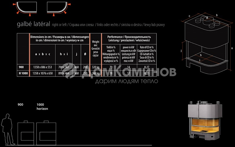Каминная топка Totem GALBE LATERAL 900