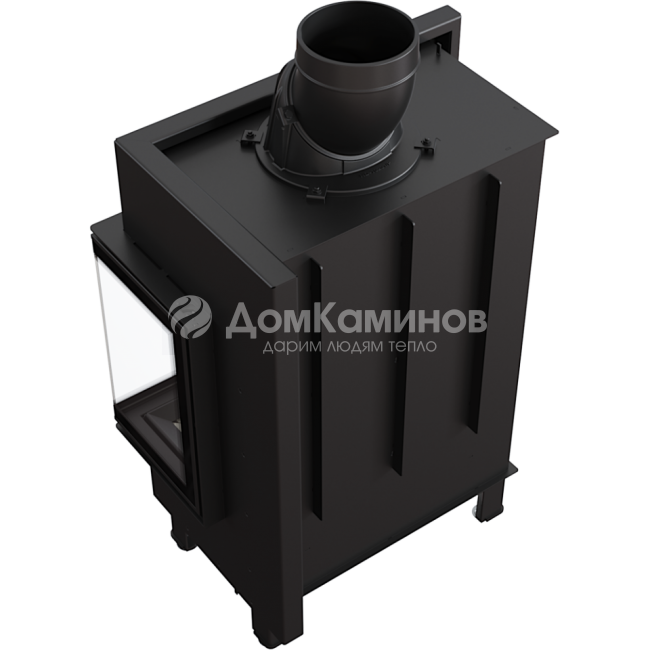 Дверца с Г-образным стеклом открывается вбок. Ширина видимой части топки составляет 698 мм, высота - 516 мм. Топливом для топки служат дрова и дровяной брикет. Максимальный размер полена составляет 350 мм. Диаметр дымохода составляет 200 мм, подключение сверху/сзади.