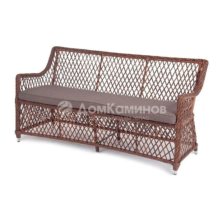 Диван «Латте» двухместный. Его отличает каркас из алюминия высокой прочности. Мебель ручного плетения, которое выполнено из круглого искусственного ротанга. Двухместный диван укомплектован длинной плоской подушкой со съемным чехлом в темно-сером оттенке. Он изготовлен из полиэстера с плотностью 230гр/м2. Предусмотрена влагоотталкивающая пропитка ткани, которая защищает текстильное изделие от случайного намокания.