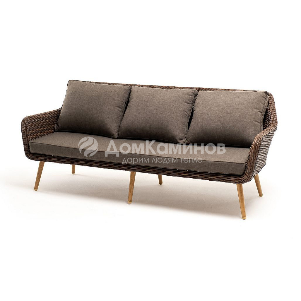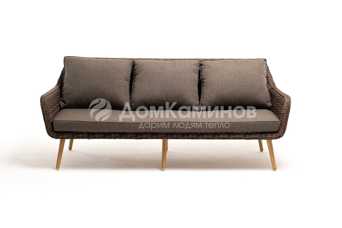 Диван «Прованс» идеально подходит для размещения трех человек. Он имеет алюминиевый каркас, который выдерживает повышенные нагрузки.Размер модели – 1900×800×770 мм. Для оплетки каркаса используется высококачественный искусственный ротанг. Мебель выполнена в бежевом оттенке.Трехместный диван дополняют мягкие подушки в серо-коричневом цвете со съемными чехлами. Тканевые изделия выполнены из прочного полиэстера плотностью 230гр/м2. Материал имеет влагоотталкивающую пропитку.