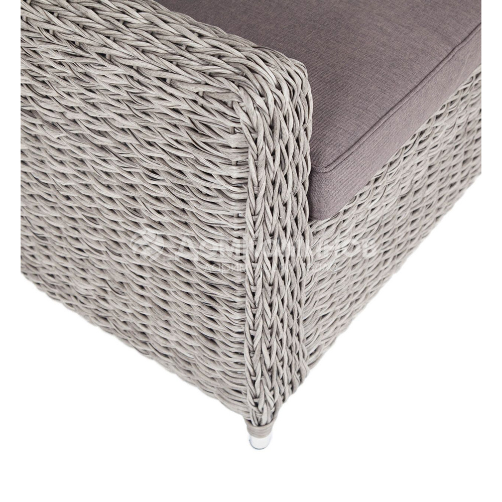 Кресло из искусственного ротанга «Кон Панна» имеет компактные размеры 780×800×800мм.Модель имеет относительно небольшой вес - 17 кг, а так же обладает прочным основанием, которое состоит из алюминиевого каркаса, оплетенного вручную искусственным ротангом вида "гиацинт" соломенного цвета.