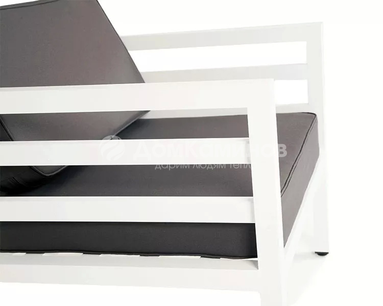 Металлическое кресло «Глория» для обустройства лаунж-зоны. Каркас изделия изготовлен из прочного, но легкого алюминия белого цвета. На сидении и спинке плоские подушки с серыми съемными чехлами, которые можно стирать в стиральной машине с использованием специальных средств.Кресло разработано специально для использования в общественных местах, в том числе и под открытым небом в любую погоду.