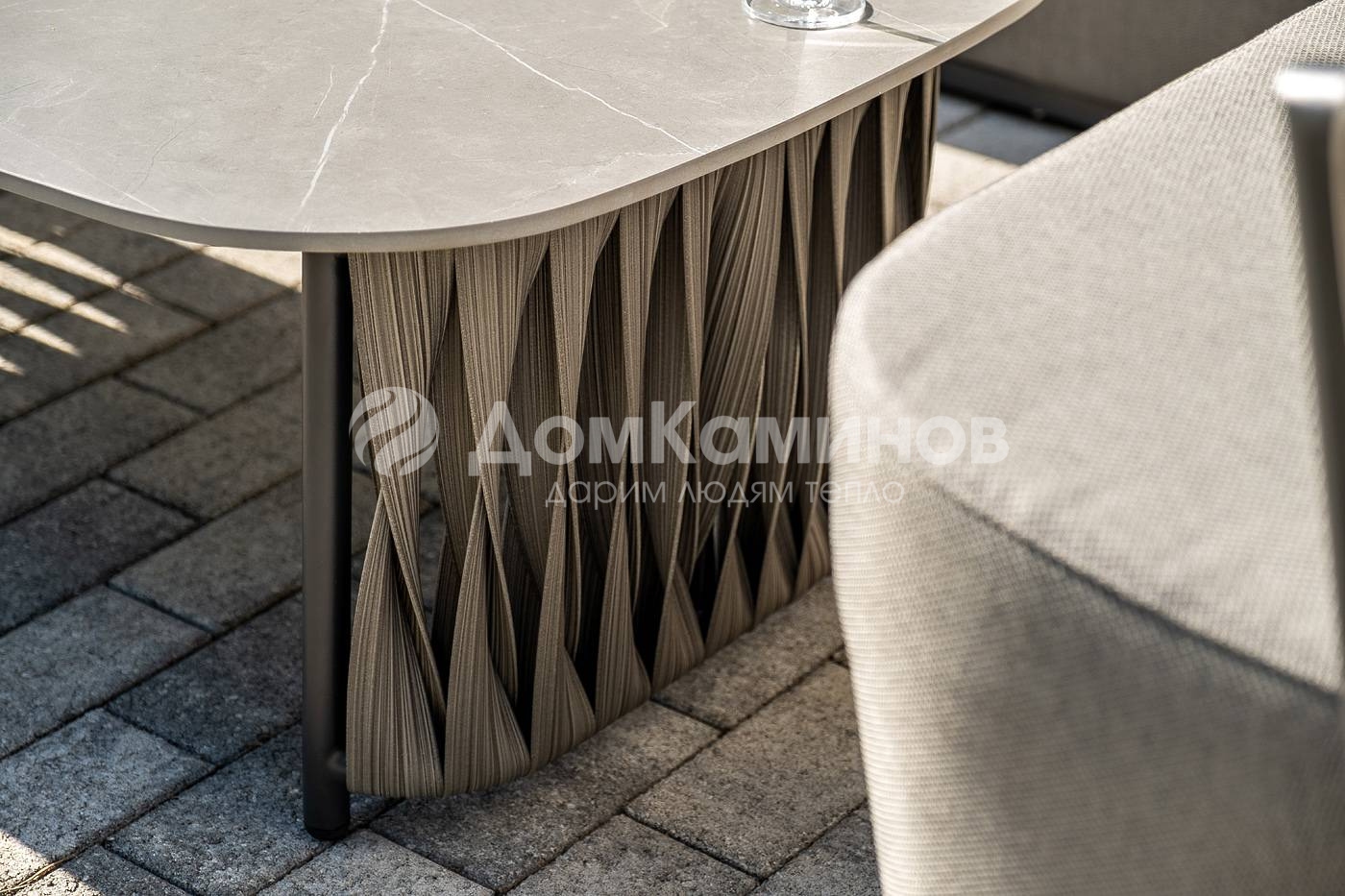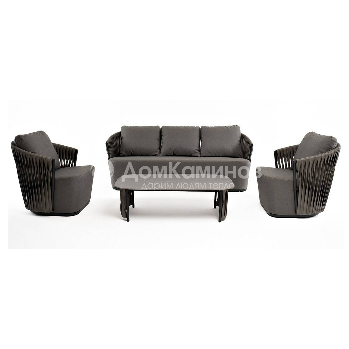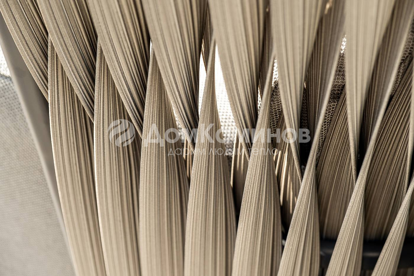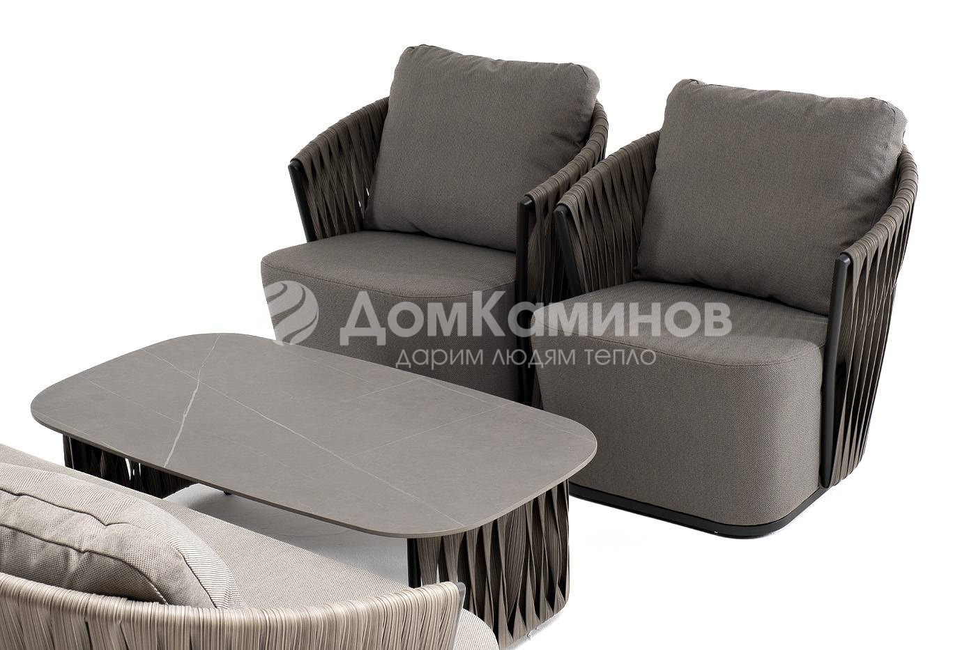 Из алюминия сделан устойчивый каркас мебели. Ее поверхность дополнена искусственным ротангом, из которого сделано ручное плетение - 50×3 мм, цвет графит.
