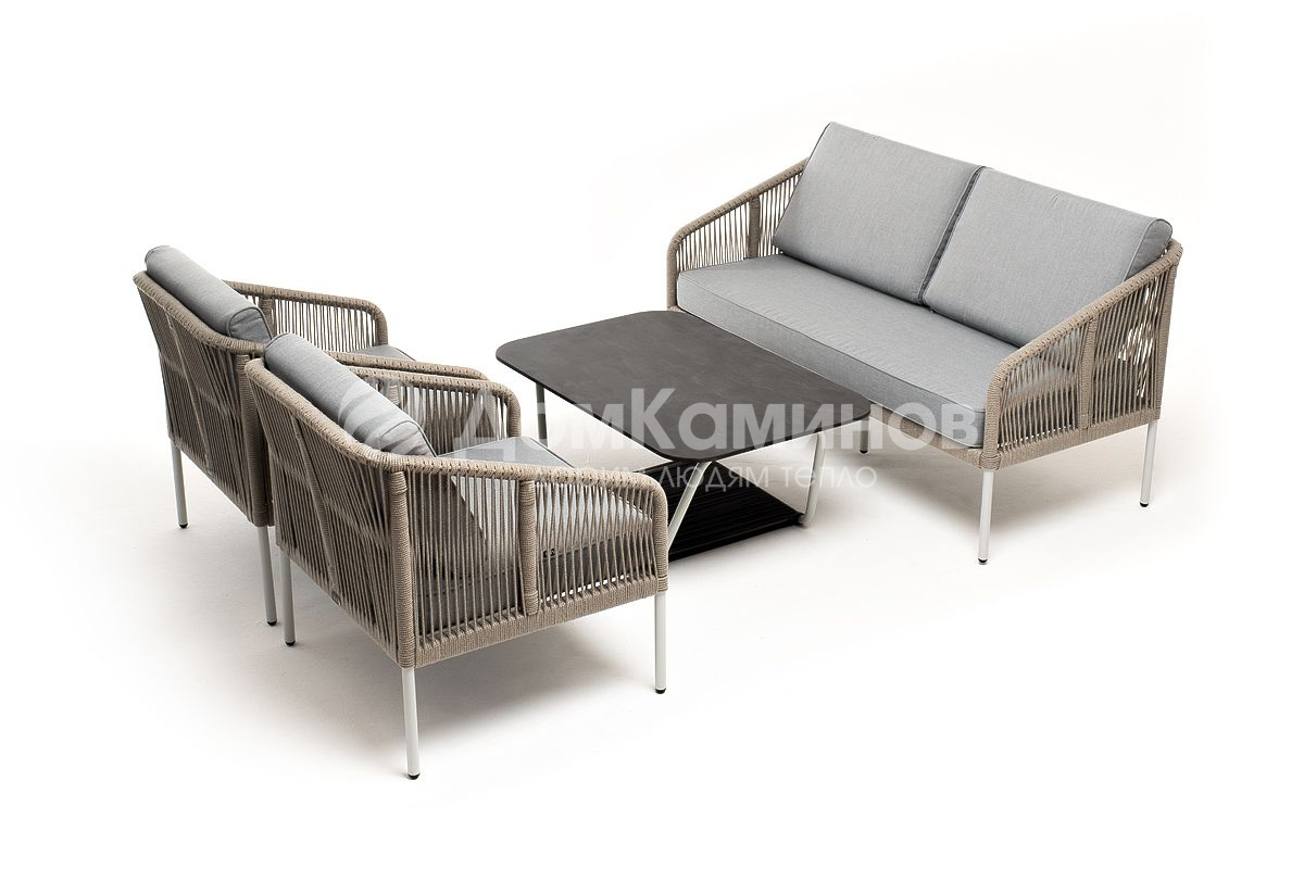 Лаунж-зона 4SIS Канны 4-местная из роупа со столиком Глория Цвет: светло-серый, серый меланж