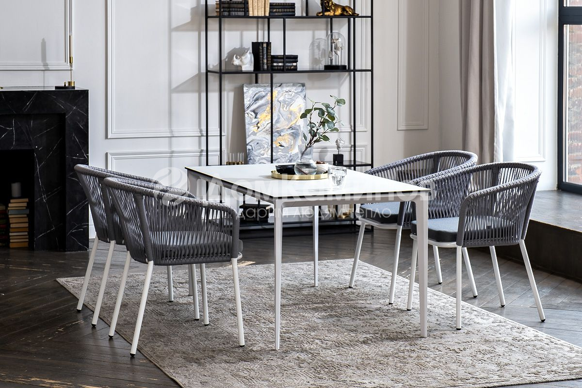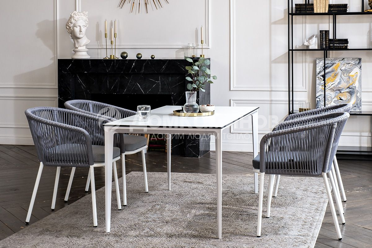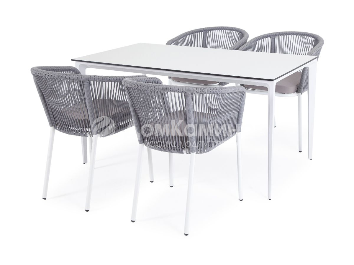 Обеденная группа 4SIS Малага 4-местная со стульями Марсель Цвет: белый, светло-серый, молочный