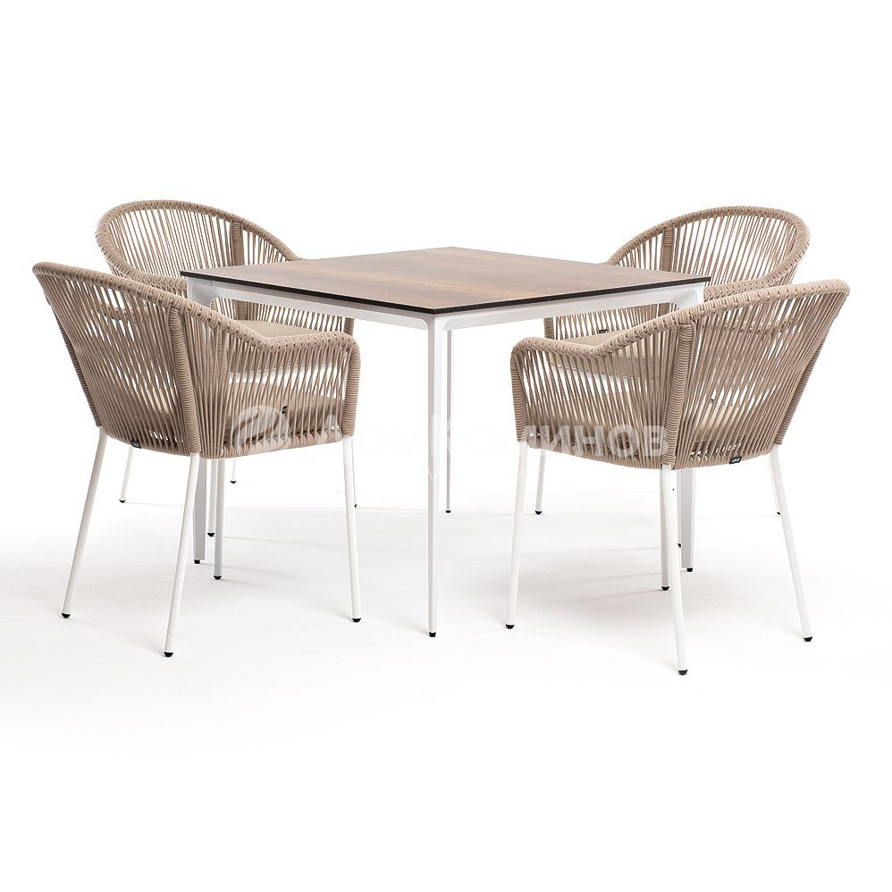 Обеденная группа 4SIS Малага 4-местная со стульями Лион Цвет: белый, бежевый