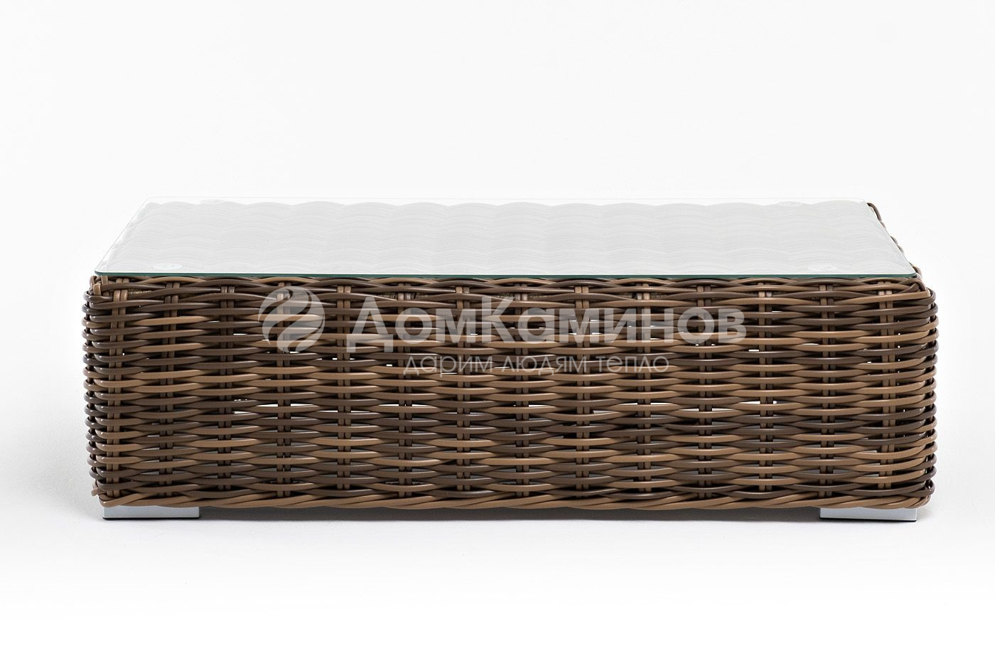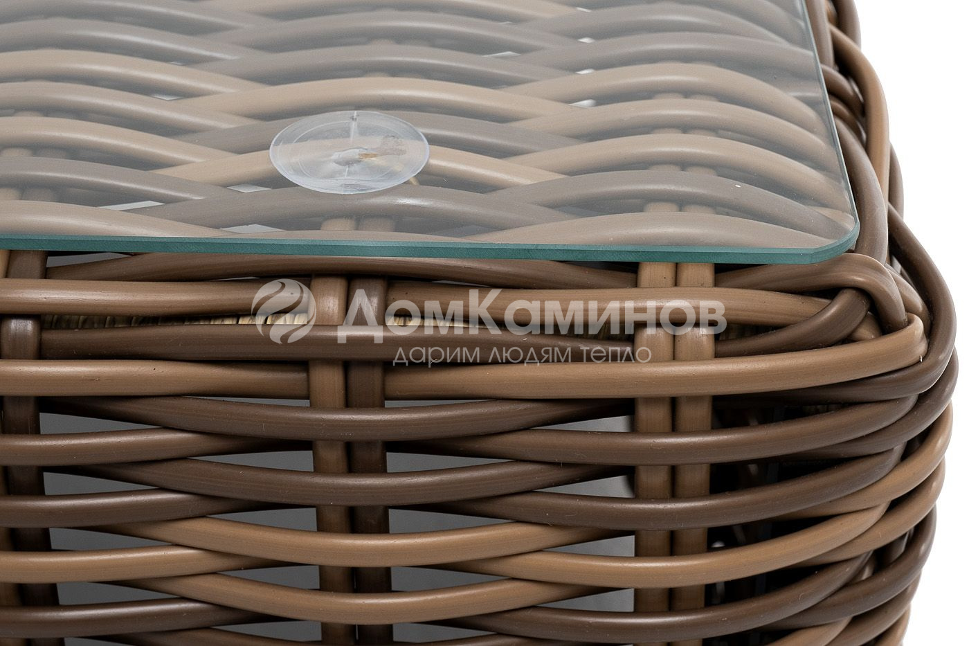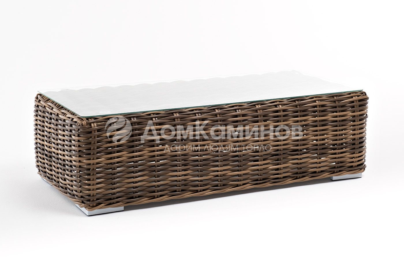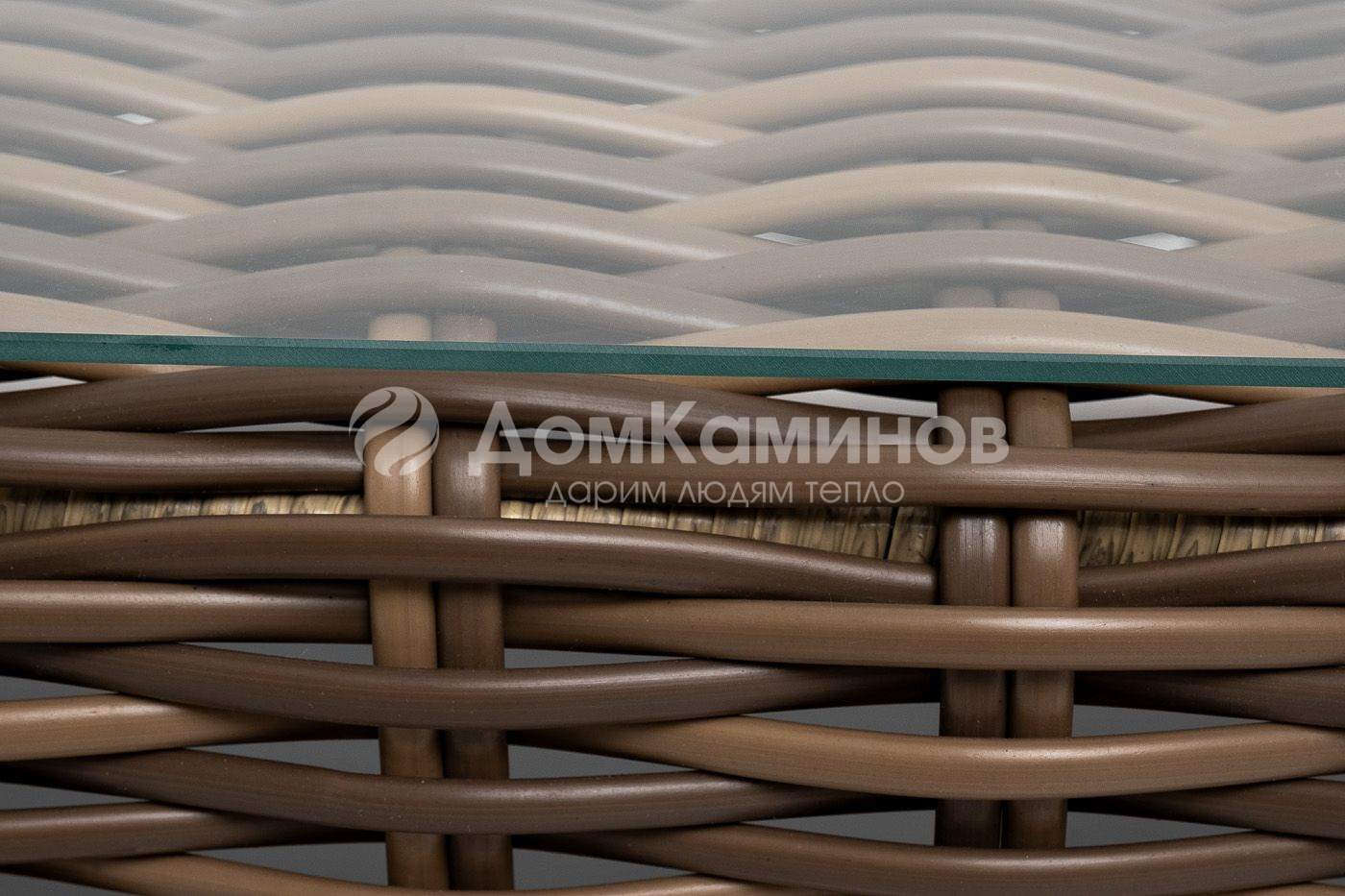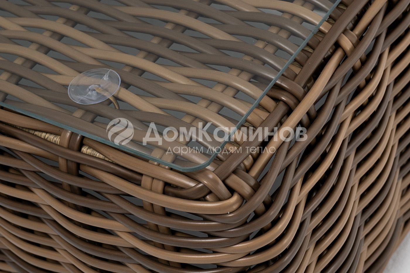Каркас столика изготовлен из алюминия, вручную оплетенного круглым искусственным ротангом.
