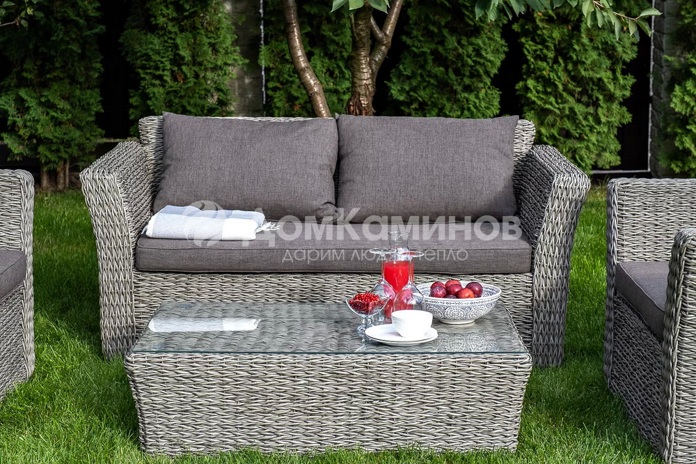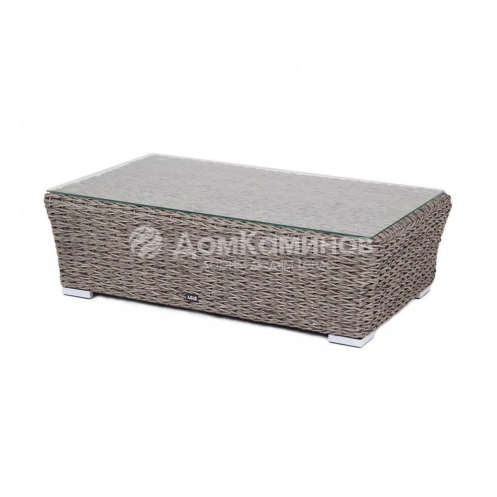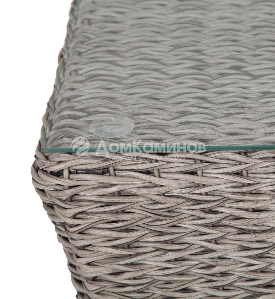 Журнальный столик «Капучино» из искусственного ротанга вида "гиацинт" графитового оттенка обладает прочным каркасом, изготовленным из алюминия, оплетка которого произведена ручным способом. Поверхность защищена столешницей из 5мм стекла.