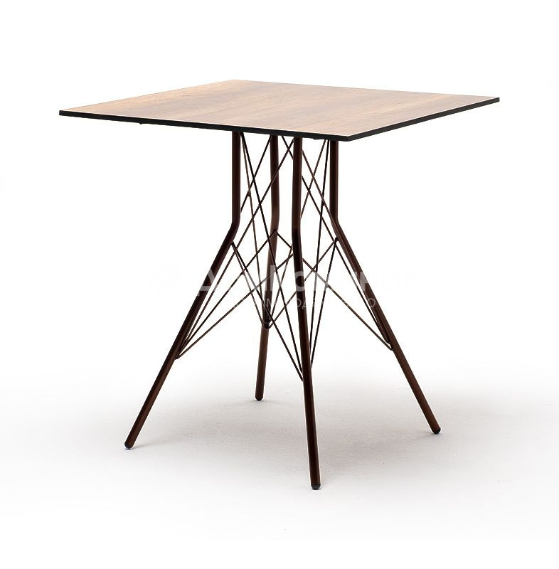 Интерьерный стол «Конте» предназначен для создания небольшой обеденной зоны или зоны отдыха в гостиной, на балконе или веранде.Каркас изготовлен из стали, окрашенной в матовый медный цвет. В качестве столешницы использован высококачественный монолитный компакт-пластика HPL, толщиной 12 мм. Цвет поверхности – «дуб».Размер столешницы – 700х700 мм, высота стола – 750 мм.Возможно изготовление стола любого размера, формы и цвета под заказ. Срок – от 3 дней.