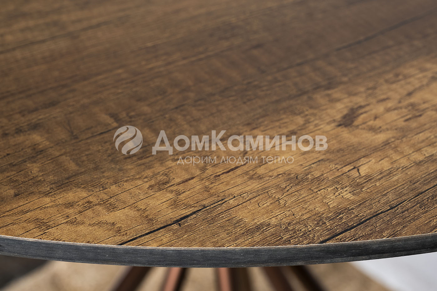 Столешница выполнена из высококачественного монолитного компакт-пластика HPL, цвет дуб подстолье металлическое, цвет медный металлик.