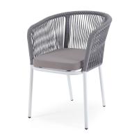Плетеный стул из коллекции "Марсель" представлен в светлых тонах. Каркас из прочного алюминия окрашен порошковой краской в светло-серый (RAL7035) цвет, ручная оплетка - роуп светло-серого оттенка.В комплекте одна подушка с влагоотталкивающей пропиткой. Чехол съемный, можно стирать в стиральной машине с использованием порошков.Размер стула: 570×620×775 мм.