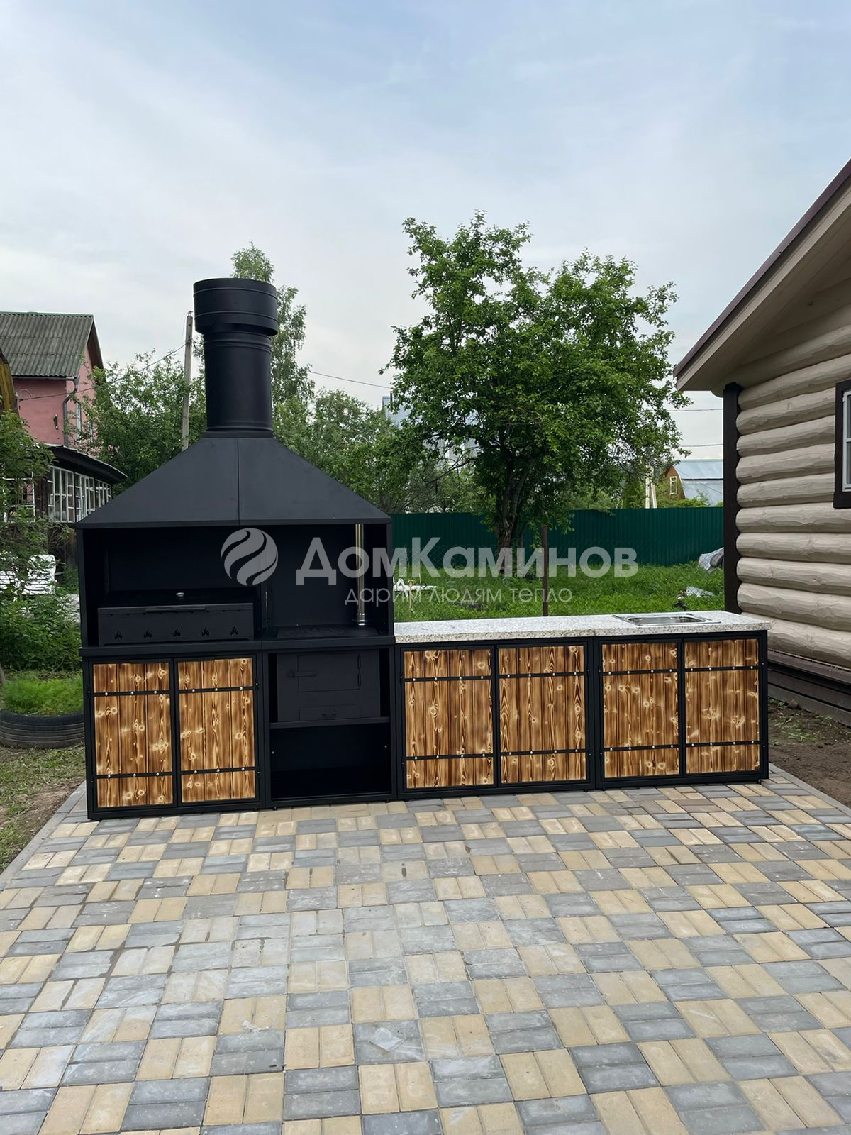 Барбекю комплекс Лофт с печью под казан с бетонной столешницей